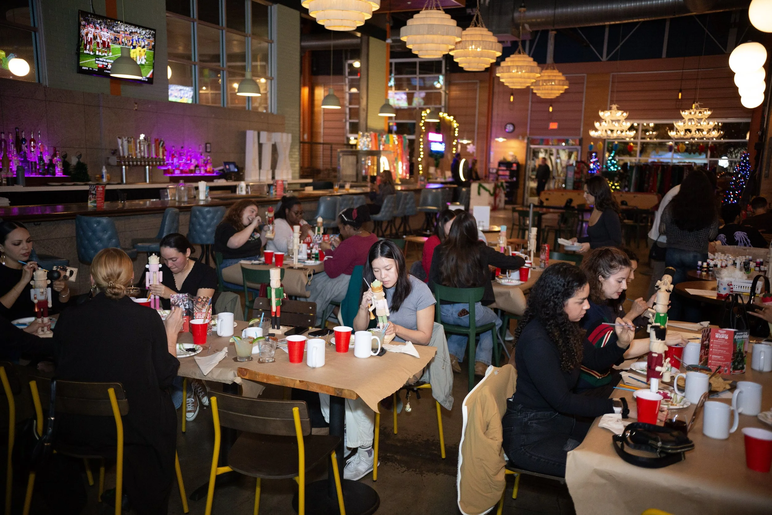 Punch Bowl Social is already known in Austin for its energetic vibe, craft cocktails, and social games—but during this special painting nutcrackers and mugs event, the space transforms into a cozy, creative playground.